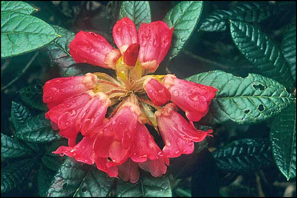 Arbustes ou petits arbres aux jeunes pousses couvertes de poils raides ou glabres. Feuilles elliptique ou globalement obovale ; dessous glabre ou avec des poils rudes ou avec des glandes pétiolées , présentant quelquefois également un fin indumentum continu formé de poils dendroïdes. Inflorescence dense composée de 10 à 20 fleurs. Calice minuscule à large, cupuliforme. Corolle à 5 lobes, rouge, charnue, tubulaire-campanulée avec présence de nectaires. Etamines au nombre de 10. Ovaire glabre à intensément couvert de glandes pétiolées, avec ou sans indumentum roux formé de poils arborescents.