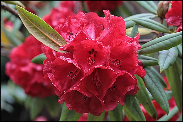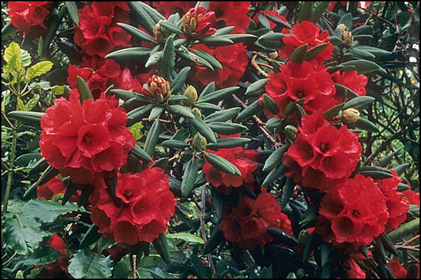 Arbustes ou petits arbres, 2 à 10 m. Feuilles elliptiques à largement obovales, dessous devenant glabre ou avec un indumentum fin composé de poils étoilés et quelquefois aussi avec quelques glandes pétiolées, qui persistent particulièrement près de la nervure centrale. Inflorescence lâche, 5 à 15 fleurs. Calice généralement petit (bien qu'atteignant 17 mm et cupulaire chez le R. schistocalyx). Corolle à 5 lobes, charnue, rouge foncé, tubulaire à campanulée infundibuliforme, avec des nectaires. Etamines 10. Ovaire densément tomenteux, généralement avec des glandes pétiolées en plus ; style glabre.