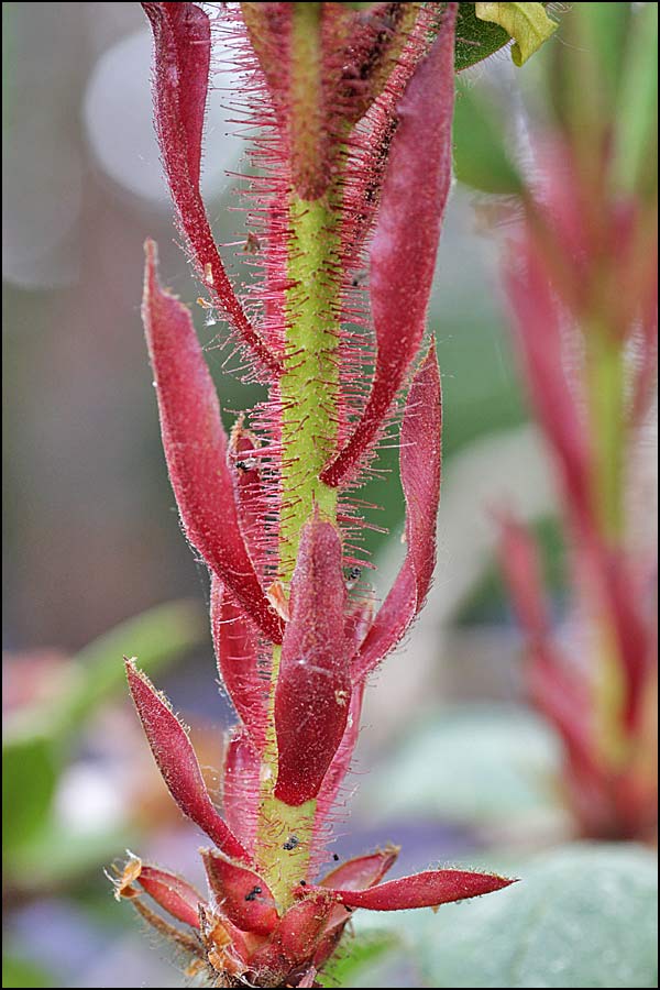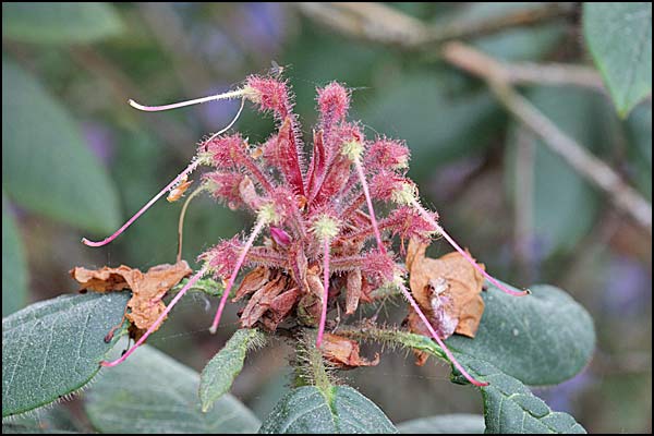 Arbuste ou petit arbre de 2 à 6 m ; jeunes pousses couvertes de poils raides glanduleux. Feuilles ovales à oblancéolées, dessous couvert de glandes pétiolées mélangées à des poils raides ou d'un indumentum dense feutré composé de poils ramifiés. Inflorescence lâche de 6 à 14 fleurs avec un calice bien développé de 5 à 15 mm. Corolle à 5 lobes, blanche, quelquefois teintée de rose, généralement avec une macule basale, en forme de campanule ou d'entonnoir-campanulé sans nectaires. Dix étamines. Ovaire densément couvert de glandes pétiolées ; style glabre, glanduleux à la base ou encore avec des poils raides glanduleux.