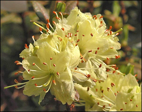 Petits arbustes ; jeunes pousses écailleuses, glabres ou (pour le R. setosum) avec des poils. Feuilles persistantes, généralement avec des papilles sur le dessous qui présentent également des écailles espacées ou denses d'un ou deux types, entièrement cerclées. Inflorescence en ombelle terminale, 1 à plusieurs fleurs. Calice minuscule à voyant. Corolle généralement campanulée ouverte, rarement hypocratériforme. Etamines 5-10(-11), le plus souvent régulièrement disposées. Style érigé, droit ou déclinant. Graines sans ailes mais avec un fin empennage peu visible.