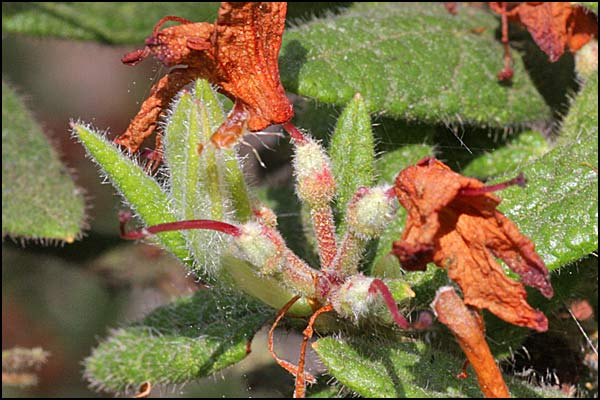 Petits arbustes jusqu'à 3 m ; jeunes pousses écailleuses , poilues et/ou couvertes de soies. Feuilles persistantes, généralement avec un indumentum persistant sur le dessus, dessous avec quelquefois des papilles blanches, couvertes de glandes vésiculaires, quelquefois également aussi avec des soies raides, au moins sur la nervure centrale. Inflorescence axillaire, 2-3(-5) fleurs. Calice en forme de cercle ou avec des lobes de 3 mm. Corolle en large campanule ou en entonnoir campanulé ou tubulaire ; étamines (8-)10, orientées vers le bas ; ovaire en creux sous le style généralement tombant. Graines sans ailes, empennages fins et peu visibles.