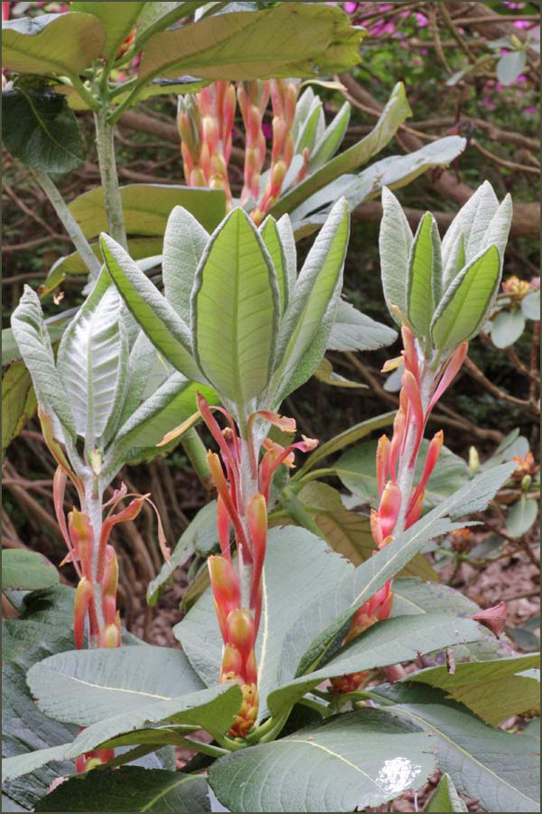 Grands arbustes ou arbres de 2m50 à 12m. Grandes feuilles oblancéolées ou globalement obovales, dessous couvert d'un indumentum blanc à roux composé de poils en forme de coupe, composé également parfois d'une sous-couche compactée. Inflorescence dense renfermant de 10 à 25 fleurs au calice minuscule. Corolle comportant généralement de 7 à 10 lobes (rarement 5) jaune ou blanche à rose, en forme d'entonnoir ou campanulée avec le dessous enflé, sans nectaires. Etamines de 14 à 18 (rarement 10). Ovaire tomenteux, glanduleux ou glabre ; style glabre.