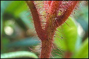 Arbuste ou petit arbre de 2 à 6 m ; jeunes pousses couvertes de poils raides glanduleux. Feuilles ovales à oblancéolées, dessous couvert de glandes pétiolées mélangées à des poils raides ou d'un indumentum dense feutré composé de poils ramifiés . Inflorescence lâche de 6 à 14 fleurs avec un calice bien développé de 5 à 15 mm. Corolle à 5 lobes, blanche, quelquefois teintée de rose, généralement avec une macule basale, en forme de campanule ou d'entonnoir-campanulé sans nectaires. Dix étamines. Ovaire densément couvert de glandes pétiolées ; style glabre, glanduleux à la base ou encore avec des poils raides glanduleux.