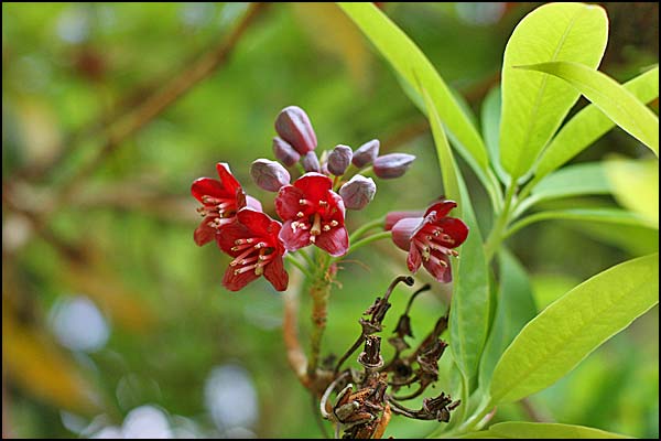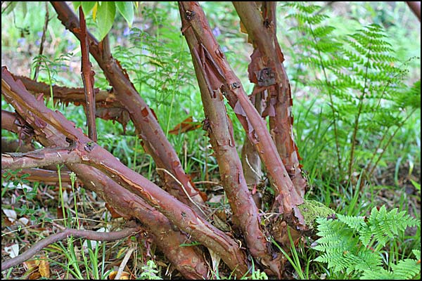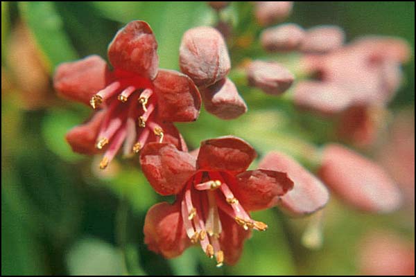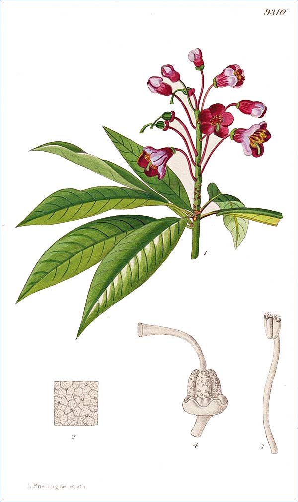 Free-growing shrubs ; young shoots scaly, glabrous. Leaves evergreen, lower surface white-papillose , scales distant, small. Inflorescence terminal, many-flowered, racemose. Calyx rim-like. Corolla campanulate ; stamens (8-)10, regularly arranged ; style impressed , sharply deflexed. Seeds unwinged and obscurely finned.