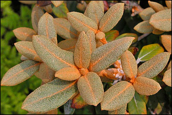Shrubs or small trees, to 7.5m. Leaves obovate to elliptic, lower surface covered with a dense one-layered, light brown to rufous, lanate or crisped tomentum composed of dendroid hairs . Inflorescence lax or dense, 3-15-flowered. Calyx minute. Corolla 5-lobed, yellow or white to pink, campanulate to open-campanulate, lacking nectar pouches. Ovary densely tomentose or (rarely) predominantly glandular ; style glabrous.