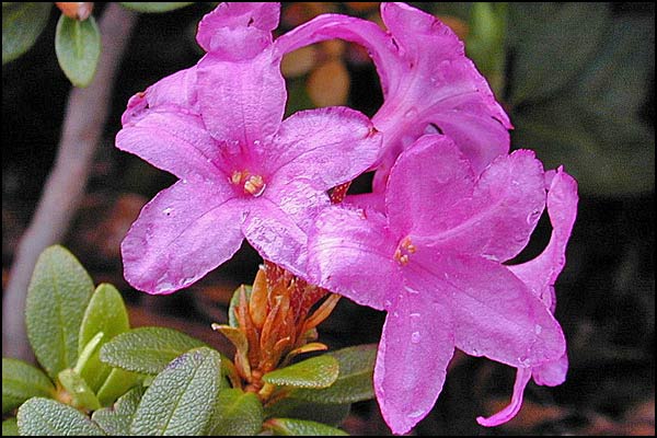 Small shrubs, to 1.5m ; young shoots densely scaly , sometimes also with a few hairs. Leaves evergreen, lower surface covered with large golden or reddish-brown scales. Inflorescence terminal, with a conspicuous rhachis . Calyx small but clearly lobed. Corolla tubular-campanulate ; stamens 10, declinate ; style straight or declinate. Seeds unwinged and obscurely finned.