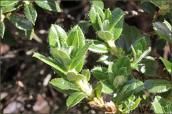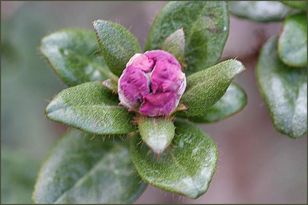 Prostrate to erect shrubs, to 1.5m ; young shoots densely scaly , glabrous, or if setose then the setae quickly deciduous. Leaves evergreen, scales on lower surface of leaves overlapping , arranged in several tiers, the upper tier sometimes with stalks. Inflorescence terminal, 1-3(-5)-flowered. Calyx deeply 5-lobed . Corolla open-funnel-campanulate ; stamens 10, declinate ; ovary impressed below the declinate style. Seeds unwinged and obscurely finned.