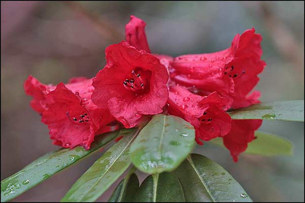 Shrubs or small trees. Leaves orbiculare to elliptic, lower surface glabrous at maturity, sometimes with fasciculate hairs overlying the veins, or covered with a thin dendroid indumentum. Inflorescence lax or dense, 1-15-flowered. Calyx usually well-developed and cupular, to 15mm. Corolla 5-lobed, white or cream to deep blackish-crimson, funnel- to tubular-campanulate, with nectar pouches. Stamens 10. Ovary glabrous, tomentose and/or stalked-glandular, style glabrous or glandular to tip.