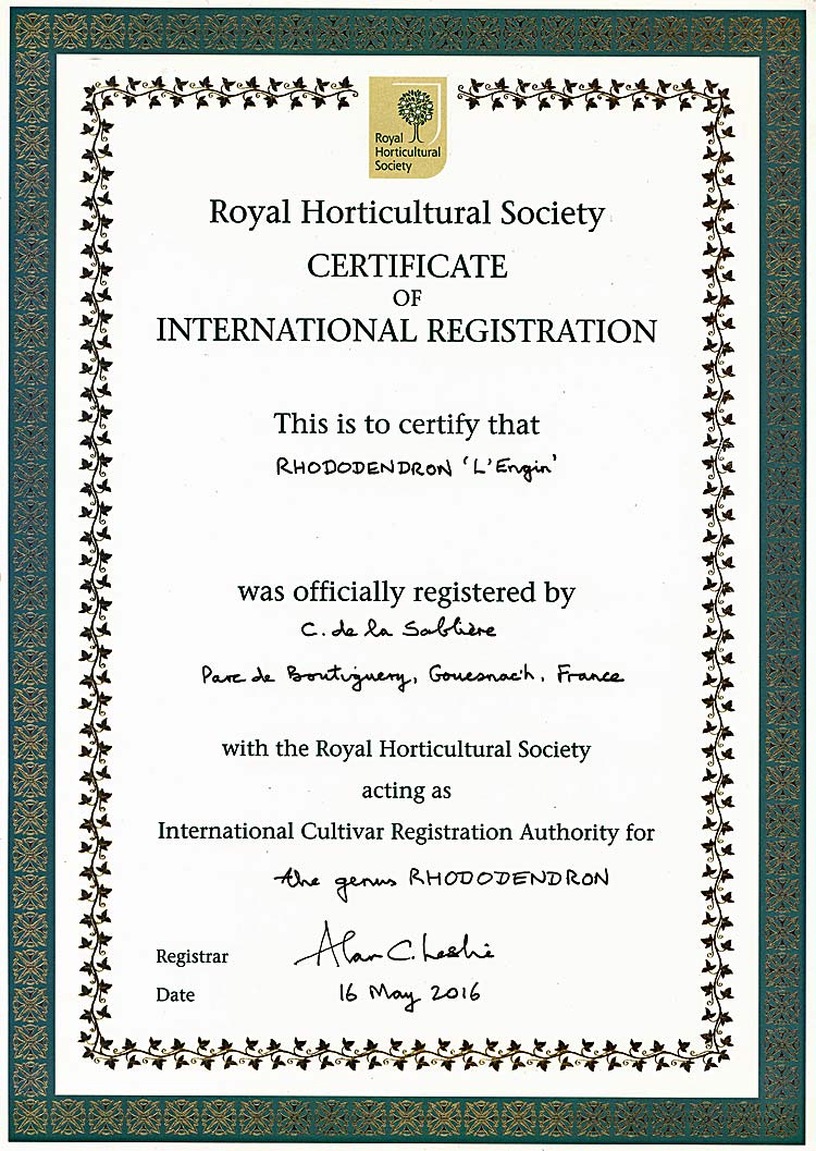 Le nom a été accepté par le responsable des enregistrements de La Royal Horticultural Society, Mr. Alan Leslie. Bravo Christian.