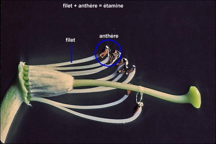 Organe mâle de la fleur comprenant le filet et l'anthère.
