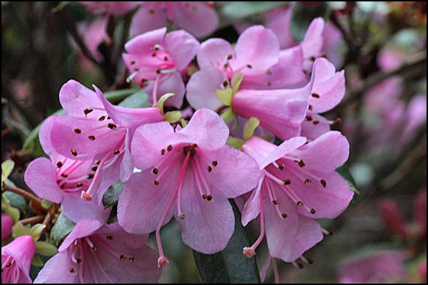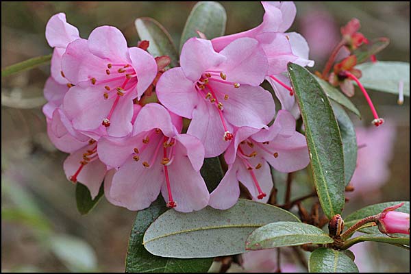Small to moderately sized shrubs ; young shoots scaly . Leaves evergreen, lower surface papillose , scales broad-rimmed, sometimes sunk in pits, uniform or of two kinds. Inflorescence usually terminal, occasionnally axillary. Calyx conspicuous . Corolla campanulate or funnel-campanulate ; stamens 10, declinate ; ovary tapering into the declinate style or ovary impressed below the style. Seeds unwinged, with obscure fins.